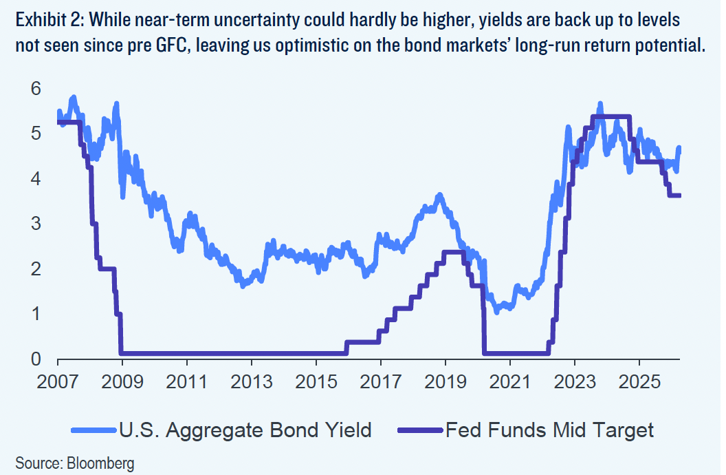 Piyasa dinamikleri incelendiğinde, tahvil piyasasının 2022’de başlayan uzun soluklu ayı döngüsünün ardından stratejik bir denge noktasına ulaştığı değerlendiriliyor. Uzman görüşleri, küresel gösterge kabul edilen ABD 10 yıllık tahvil faizlerinin %4,0 ile %4,5 bandına sıkışmasını, piyasanın “denge faizi” arayışının bir sonucu olarak görüyor. Bu noktada “Yield is Destiny” (Getiri Kaderdir) prensibi yeniden sahneye çıkıyor. Geçmiş veriler ve matematiksel projeksiyonlar, tahvil piyasasında toplam getirinin %90’ından fazlasının giriş anındaki başlangıç faizi (yield) tarafından belirlendiğini kanıtlıyor. Faizlerin %4,5 – %5,0 bandında seyretmesi, sermaye kaybı riskine karşı devasa bir kupon getirisi kalkanı oluşturuyor. Bu durum, piyasa oyuncuları için son 15 yılın en cazip giriş pencerelerinden birinin açık olduğunu teyit ediyor.