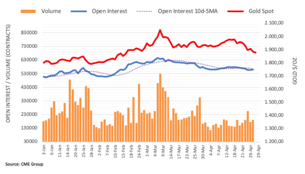 Piyasa analisti Pablo Piovano’ya göre altın fiyatları, artan açık faiz ve hacim nedeniyle Çarşamba günü haftalık düşüşünü uzattı ve sarı metali kısa vadeli ufukta daha fazla geri çekilmeye karşı savunmasız bıraktı. Bununla birlikte analist, külçe için bir sonraki desteğin, bugün 1.833 dolardan 200 günlük SMA’da ortaya çıktığını belirtiyor.