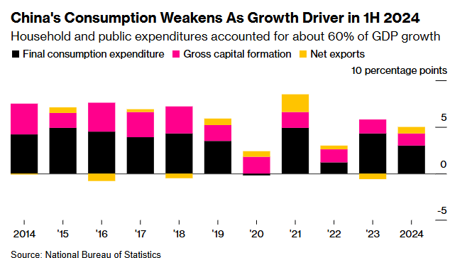 Ekonominin ana itici gücü olan tüketim, geçen yıl Covid sonrası yeniden açılış harcamalarındaki toparlanmanın ardından bu yıl zayıfladı. Yaygın iş ve maaş kesintilerinin yanı sıra düşen emlak fiyatları karşısında Çinli tüketiciler harcamalarında daha temkinli davranmaya başladı ve bu durum otomobil gibi sektörlerde fiyat savaşlarına yol açtı. Bloomberg Economics’ten Chang Shu ve Eric Zhu, “Çinli e-ticaret şirketleri artık sert fiyat indirimlerinin bile çözemeyeceği bir sorunla karşı karşıya: zayıf bir tüketici” diye yazdı. “Makroekonomik açıdan bakıldığında, PDD hisselerindeki düşüş önemli bir noktaya işaret ediyor: yavaşlayan gelir artışları ve zedelenen güven, tüketimi baskılıyor.”