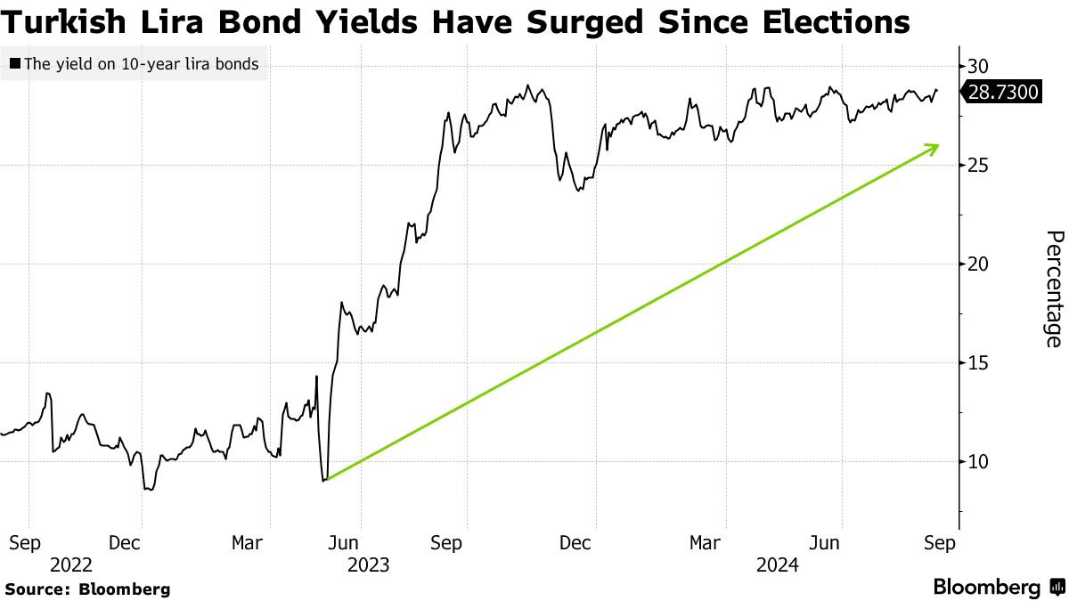 Merkez Bankası verilerine göre, Türk tahvilleri bu yıl yaklaşık 12 milyar dolarlık yurtdışı girişi görürken, haftalık keskin dalgalanmalar uzun vadeli yatırım konusunda bazı tereddütlere işaret ediyor. DiClementi de yerel para birimi cinsinden tahvillere temkinli yaklaşarak bu düşünceyi yineledi. Türkiye’nin iki ve 10 yıllık tahvilleri 5 Eylül itibariyle sırasıyla %42,4 ve %28,7 getiri sağlıyordu.