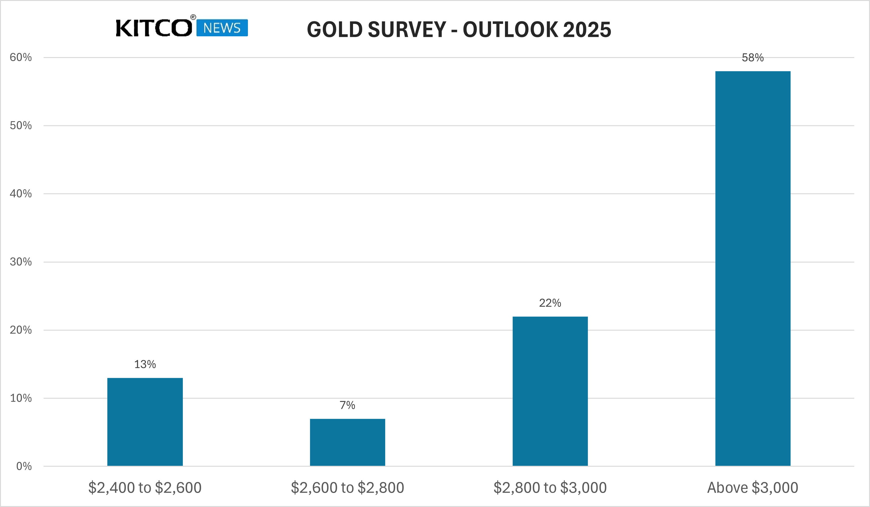 Kitco Yıllık Altın Anketi, bireysel yatırımcıların altının yükseliş potansiyeline güçlü bir şekilde inandığını gösteriyor. Büyük bankalar ve sektör uzmanları da çoğunlukla 2025’te altının güçlenmeye devam etmesini bekliyor. 457 bireysel yatırımcının çoğunluğuna göre sarı metal 2025 yılında üç bin doların üzerinde işlem görecek. Böylece parlak metal, yeni tüm zamanların en yüksek seviyesine ulaşacak.
