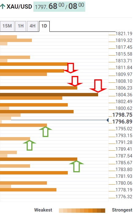 Bu seviyede, bir günlük Fibonacci yüzde 23,6 geri çekilme seviyesi dört saatlik SMA5 ile çakışıyor. Bir sonraki direnç, Fibonacci yüzde 38.2 geri çekilme seviyesi ve bir günlük SMA50’nin kesişimi olan 1.803 dolarda bekliyor. Analiste göre 1.806 dolarda oturan SMA200, boğalar 1.810 dolarda güçlü bir engele doğru ilerlerken, düşüş beklentilerine meydan okuyacak. Bu seviye, bir günlük yüzde 61.8 Fibonacci geri çekilme seviyesi, dört saatlik SMA200 ve bir haftalık pivot noktası S1’in yakınsamasıdır.
