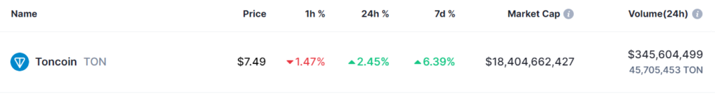 Toncoin (TON) ise son zamanlarda kayda değer fiyat dalgalanmaları yaşadı. Altcoin, 7,60 dolar civarında dengelenmeden önce 8,31 dolarlık yeni bir zirveye ulaştı. 7,49 dolardan fiyatlandırılan TON, keskin bir düşüşe rağmen dayanıklılık gösterdi. TON, 7,50 dolarda yatay dirençle yükselen bir üçgen formasyonu oluşturdu. Yeni bir zirveye ulaşan son kırılma, kısa vadede 10 doları hedefleyen ve muhtemelen sonraki rallilerde ötesine geçen bir yükseliş trendi için potansiyel olduğunu gösteriyor.