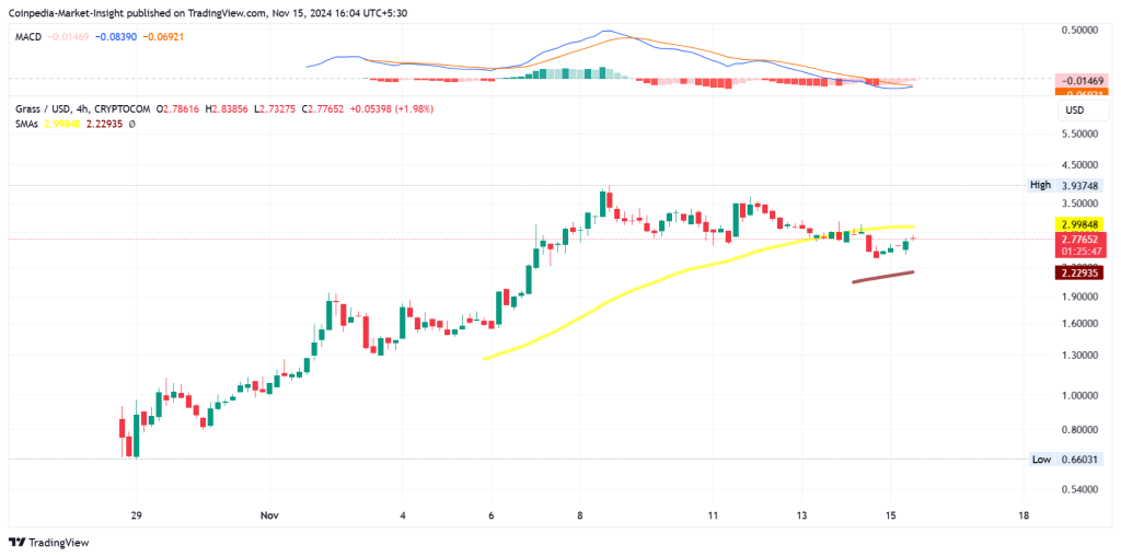 GRASS, kullanıcıların ödüller için mevcut bant genişliğini paylaşmalarını sağlayan yeni bir dApp. Ağ, doğrulanmış kurumlarla bant genişliği paylaşımını kolaylaştırıyor. Ayrıca, kullanıcıları katkıları için doğrudan teşvik ediyor. Şu anda GRASS, tüm zamanların en düşük seviyesi olan 0,655 dolardan yaklaşık %300 artışla 2,77 dolardan işlem görüyor. Piyasa değeri 700 milyon dolara yaklaşan GRASS, merkezi olmayan bir uygulama olarak hızla ilgi görüyor.