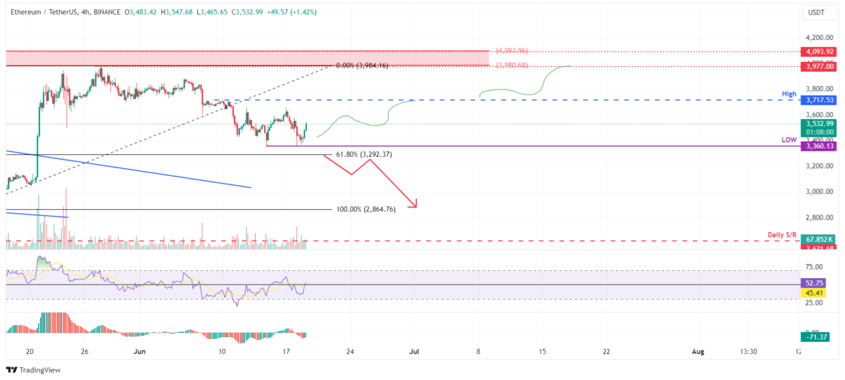BTC/USDT 4 saatlik grafikEthereum fiyatı bir ralli potansiyeli gösteriyor