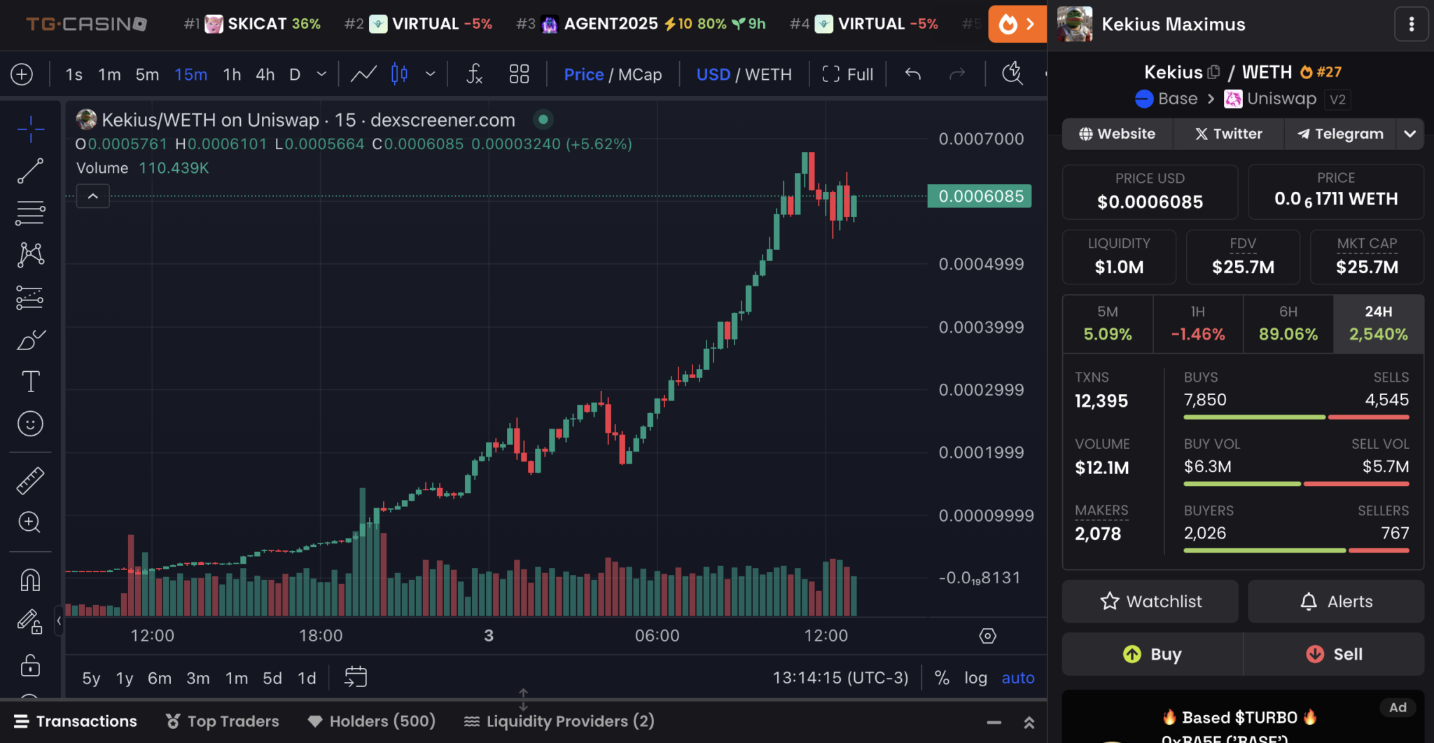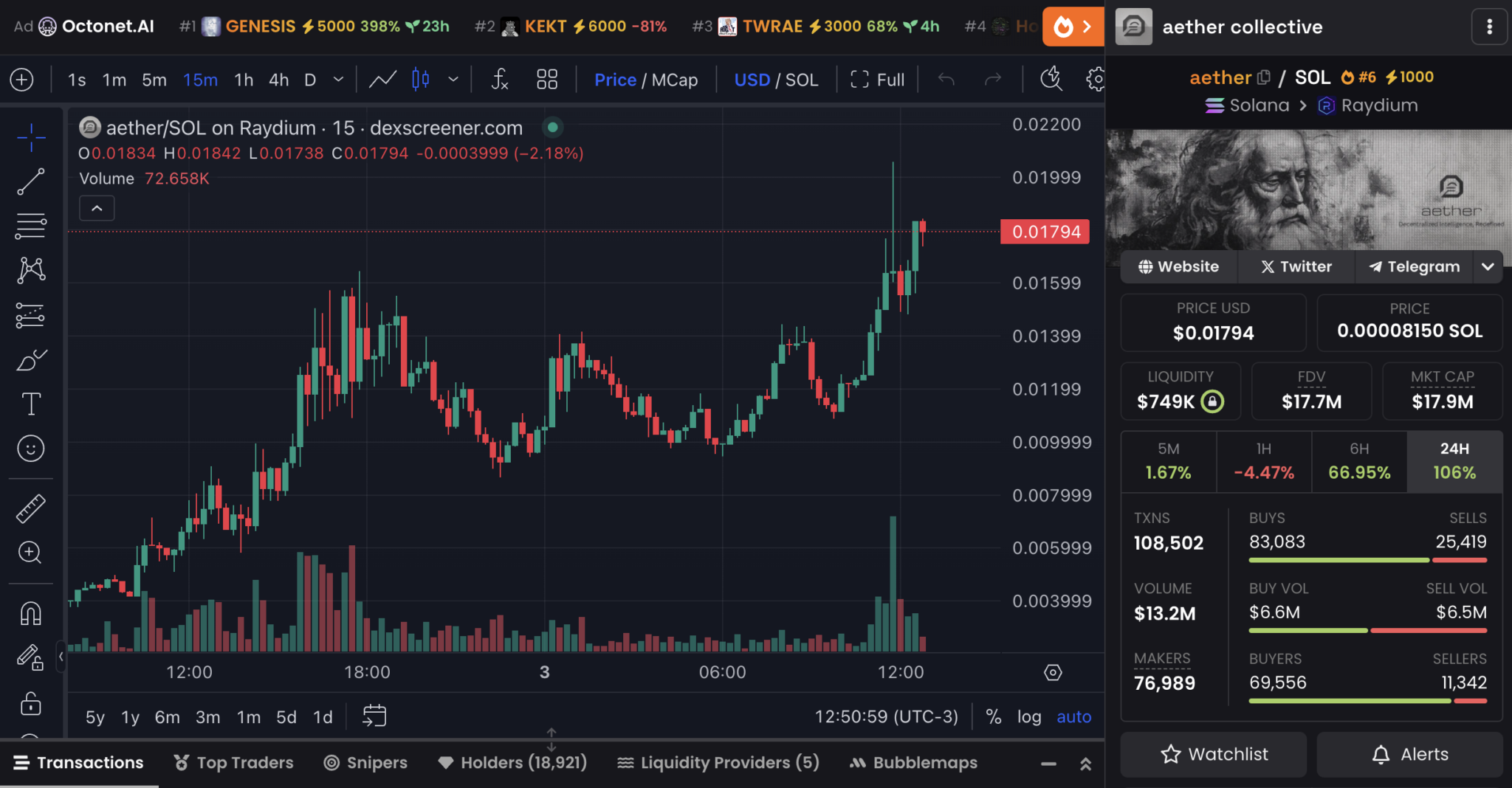 AETHER Fiyat Grafiği ve Piyasa Verileri. Kaynak: Dexscreenerİkinci sırada Kekius Maximus (KEKIUS Coin) geliyor