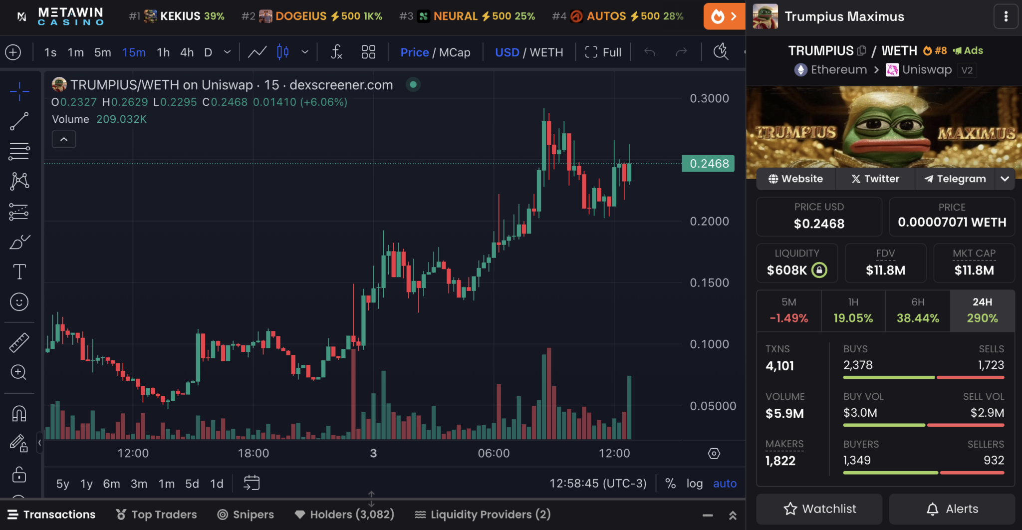 KEKIUS Coin Fiyat Grafiği ve Piyasa Verileri. Kaynak: DexscreenerSon sıradaki altcoin: Trumpius Maximus (TRUMPIUS)