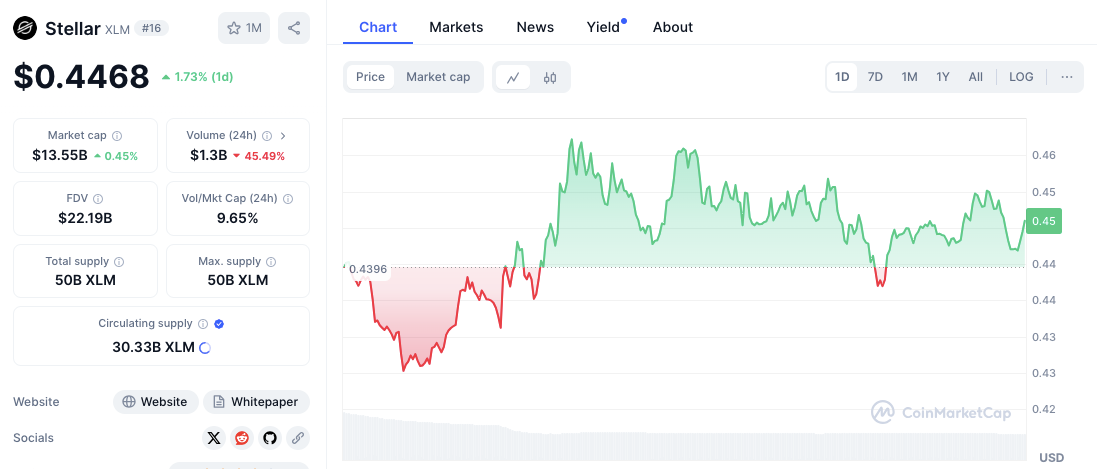 Benzer şekilde, Stellar (XLM) son 24 saatte %0,53 artışla 0,4425 dolardan işlem görüyor. Piyasa değeri 13,42 milyar dolar ve işlem hacmi 1,3 milyar dolar. Grafik, XLM’nin toparlanmadan önce 0,44 doların altına düştüğü dalgalanmayı gösteriyor. 0,46 dolarlık direnç seviyeleri bazı fiyat düşüşlerine neden oldu. Analiste göre, ancak XLM bu seviyeyi kırarsa 0,47 doları hedefleyebilir. Destek seviyeleri, fiyatın geçmişte istikrar bulduğu 0,44 dolar ve 0,43 dolar seviyelerinde. XLM için 0,46 doların üzerinde bir kırılma güçlü bir yukarı yönlü momentuma işaret edecektir.