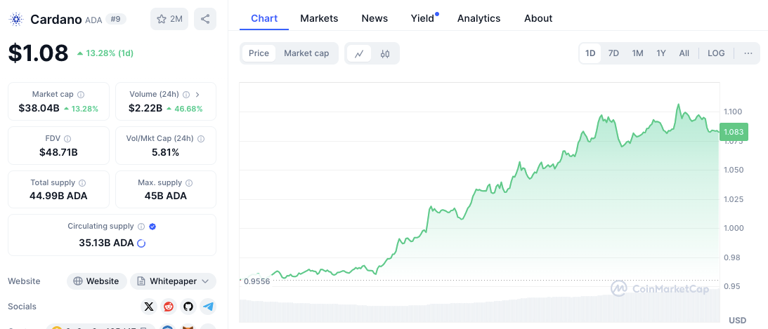 Buna karşılık Cardano (ADA) 1,09 dolardan işlem görerek geçtiğimiz gün %14,02’lik bir artış gösterdi. Piyasa değeri 38,14 milyar dolar ve işlem hacmi 2,2 milyar dolar. ADA, 0,95 dolardan 1,09 dolara tırmanarak güçlü bir yükseliş trendi yakaladı. Analiste göre fiyat, yükseliş eğilimini teyit edecek şekilde daha yüksek zirveler ve daha yüksek dipler oluşturdu. Temel destek seviyeleri 1,05 ve 1,00 dolardır. Direnç 1,10 dolar ve 1,15 dolardır. ADA 1,10 doların üzerine çıkarsa, bir sonraki direnç 1,15 dolar olabilir ve bu da daha fazla yukarı yönlü potansiyel olduğunu gösterir.