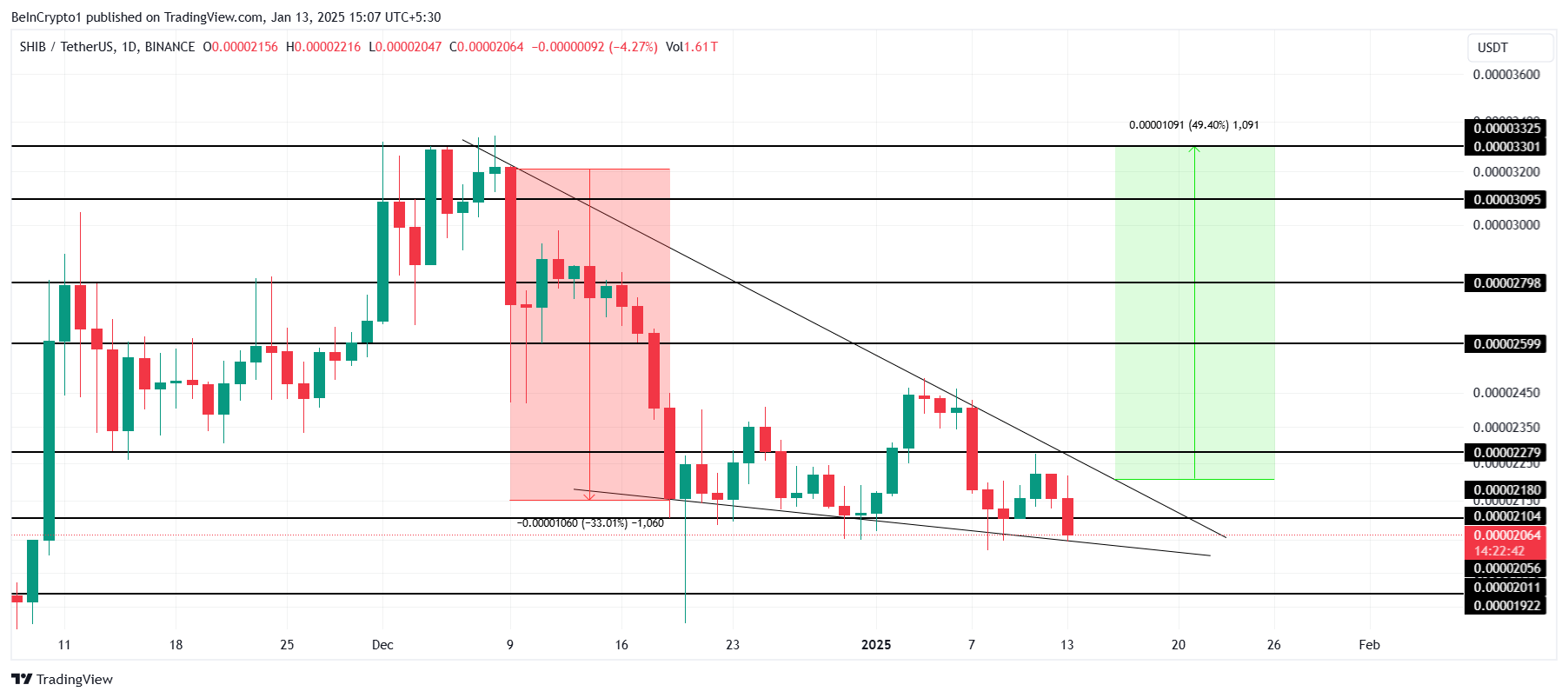 SHIB Fiyat Analizi. Kaynak: TradingViewAncak, Shiba Inu momentumu sürdüremez ve alt trend çizgisinin altına düşerse, daha fazla düşüş riski taşır. Böyle bir düşüş SHIB’yi 0,00001922 dolar destek seviyesine doğru iterek yükseliş görünümünü geçersiz kılabilir. Ayrıca, altcoini ek kayıplara karşı savunmasız bırakabilir.