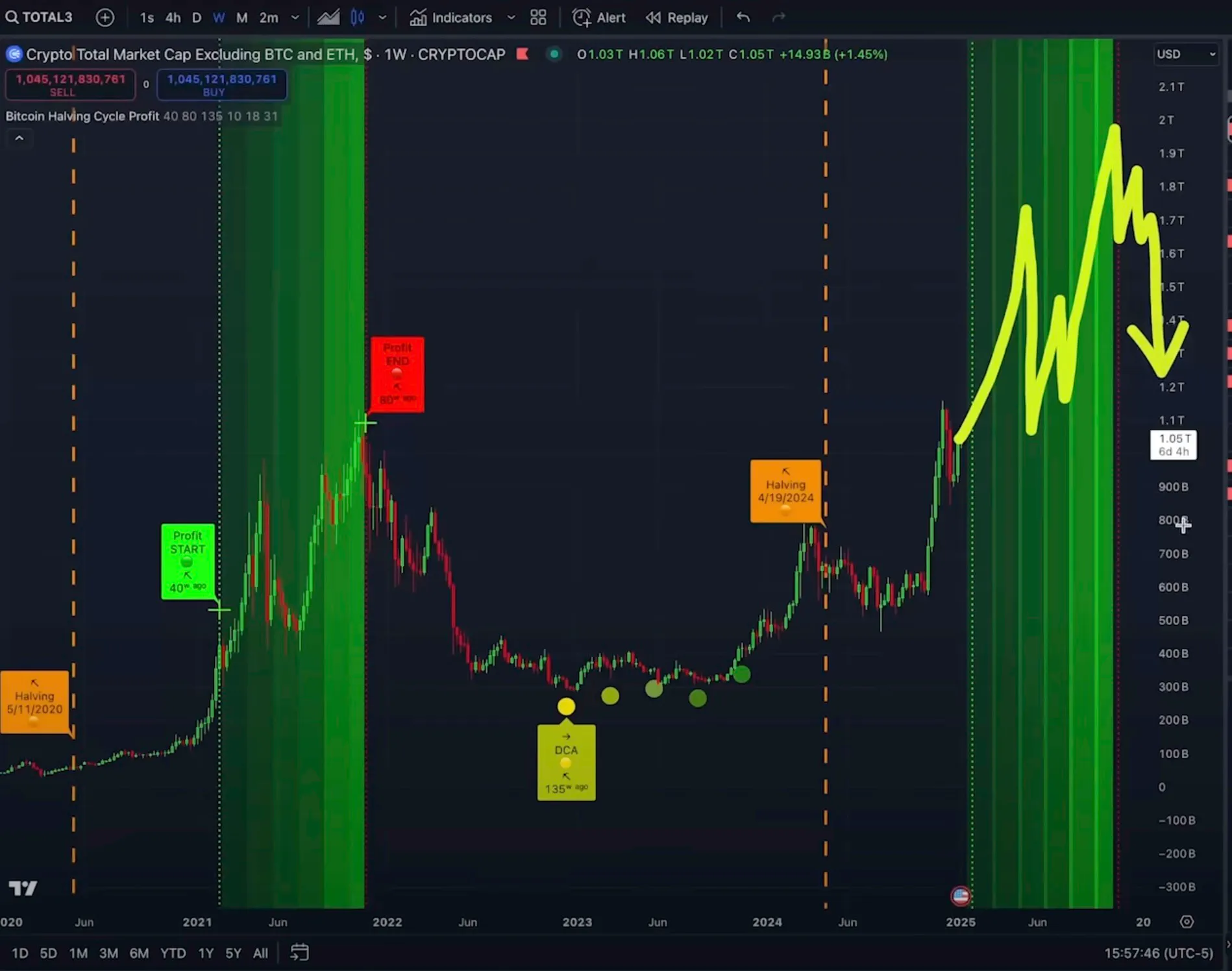 Analiste göre Bitcoin yükselişini sürdürürken, altcoinler de bu dalganın peşinden gidecek. Özellikle TOTAL3 grafiği, geçmiş döngülerde halving sonrası %170 gibi devasa yükselişler sergiledi. Svenson açıklamalarına şöyle devam etti: