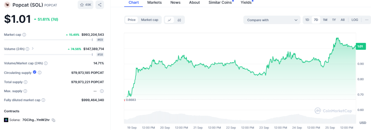 Popcat Piyasa Değeri. Kaynak: CoinMarketCap