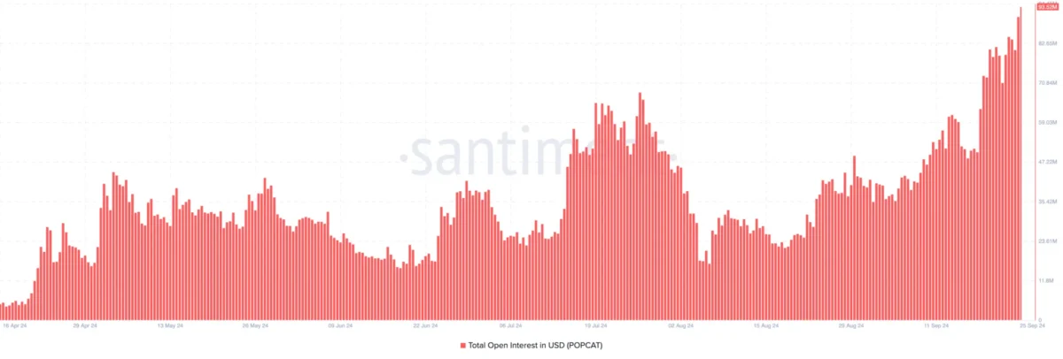 On- chain perspektiften baktığımızda, Santiment’in verileri ayrıca Açık Faizin (OI) yeni bir ATH’ye tırmandığını gösteriyor. Yazı sırasına, meme coin’in OI’si 93,52 milyondu. Tanım olarak OI, piyasa duyarlılığını ve bir trendin arkasındaki gücü belirlemek için kullanılan, piyasada bekleyen sözleşmelerin sayısıdır. OI’deki bir artış, piyasaya yeni para girdiğini gösterir. Ayrıca, bu da devam eden fiyat trendini destekleyebilir. Öte yandan bir düşüş, pozisyonlarda bir düşüş olduğunu gösterir. Ayrıca, genellikle devam eden eğilimi zayıflatır. Ancak, POPCAT’in fiyatı 1,08 dolardan hafifçe geri çekildi. Meme coin yazı sırasında 1,01 dolardan işlem görüyordu. Bu durum devam ederse, OI yükselse bile yükseliş trendi zayıflayabilir.