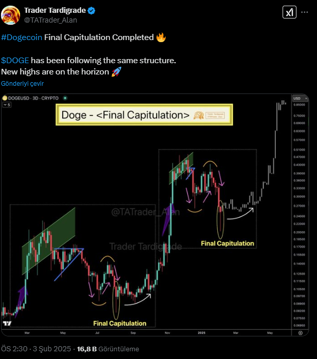 Son piyasa düzeltmelerine rağmen, Dogecoin (DOGE) güçlü bir yükseliş yaşayarak 0.2539 dolar seviyelerine ulaştı. Geçtiğimiz yıl değerinde %200 oranında bir artış yaşanması ise, analiste göre, yatırımcı ilgisinin arttığının bir göstergesi. Analistler, DOGE’nin geçmiş piyasa trendlerini yansıttığını ve bunun yeni zirvelere işaret edebileceğini belirtiyor. Meme coin’in güçlü duruşu, altcoin sezonu öncesinde yatırım yapılması gereken kripto paralardan biri olarak öne çıkıyor. Piyasa hareketliliğinin artmasıyla birlikte DOGE, 2025’in başında önemli kazançlar sağlamak isteyen yatırımcılar için odak noktası olmaya devam ediyor.