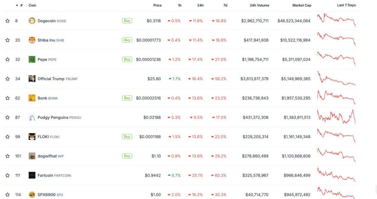 Bugün, memecoinler büyük ölçüde sosyal medya etkisi ve topluluk desteğiyle yönleniyor. Dogecoin (DOGE), Shiba Inu (SHIB) ve Pepe (PEPE) gibi popüler memecoinler, son bir haftada %27’ye varan sert düşüşler yaşadı.