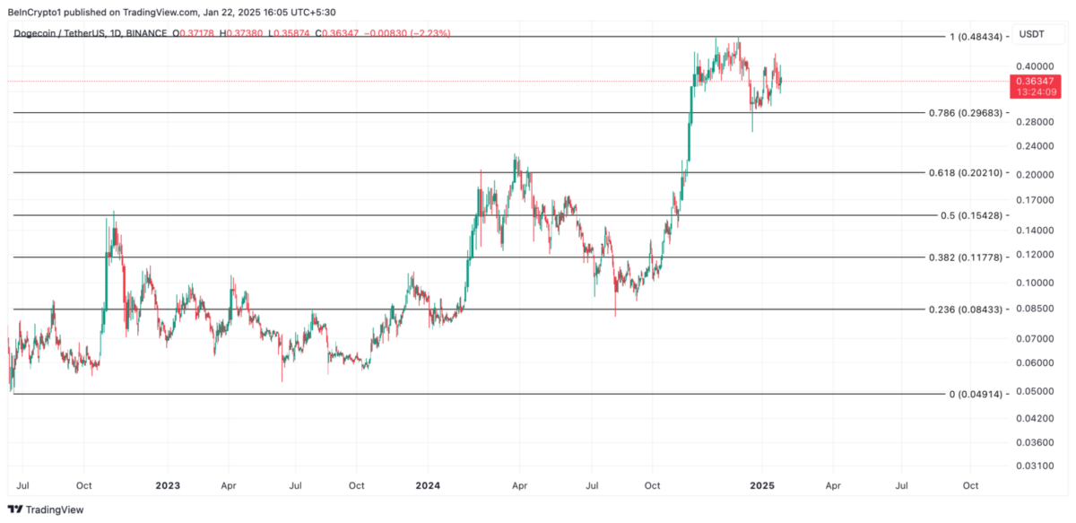 Eğer mevcut yükseliş momentumu korunursa, DOGE haftalık %3’lük fiyat artışını sürdürecektir. Bu süreçte alım baskısı arttıkça, dört yılın zirvesi olan 0,48 seviyesi yeniden test edecektir. Ancak, bu iyimser beklenti, balinaların birikim hızının yavaşlaması veya satış etkinliklerinin yeniden başlaması durumunda geçerliliğini yitirebilir. Böyle bir senaryoda DOGE fiyatı, 0,29 seviyesine kadar gerileyebilir.