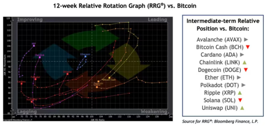 BTC’ye karşı 12 haftalık göreli rotasyon grafiği. Kaynak: Fairlead Strategies, Bloomberg“Bu 3 altcoin Bitcoin karşısında daha az aşağı yönlü momentuma sahip!”