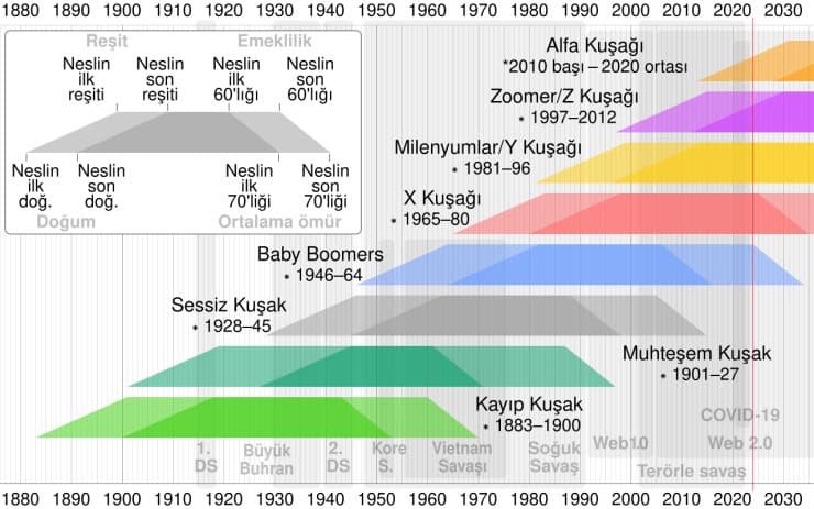 Kuşakların zaman çizelgesi. Görsel: Wikipedia