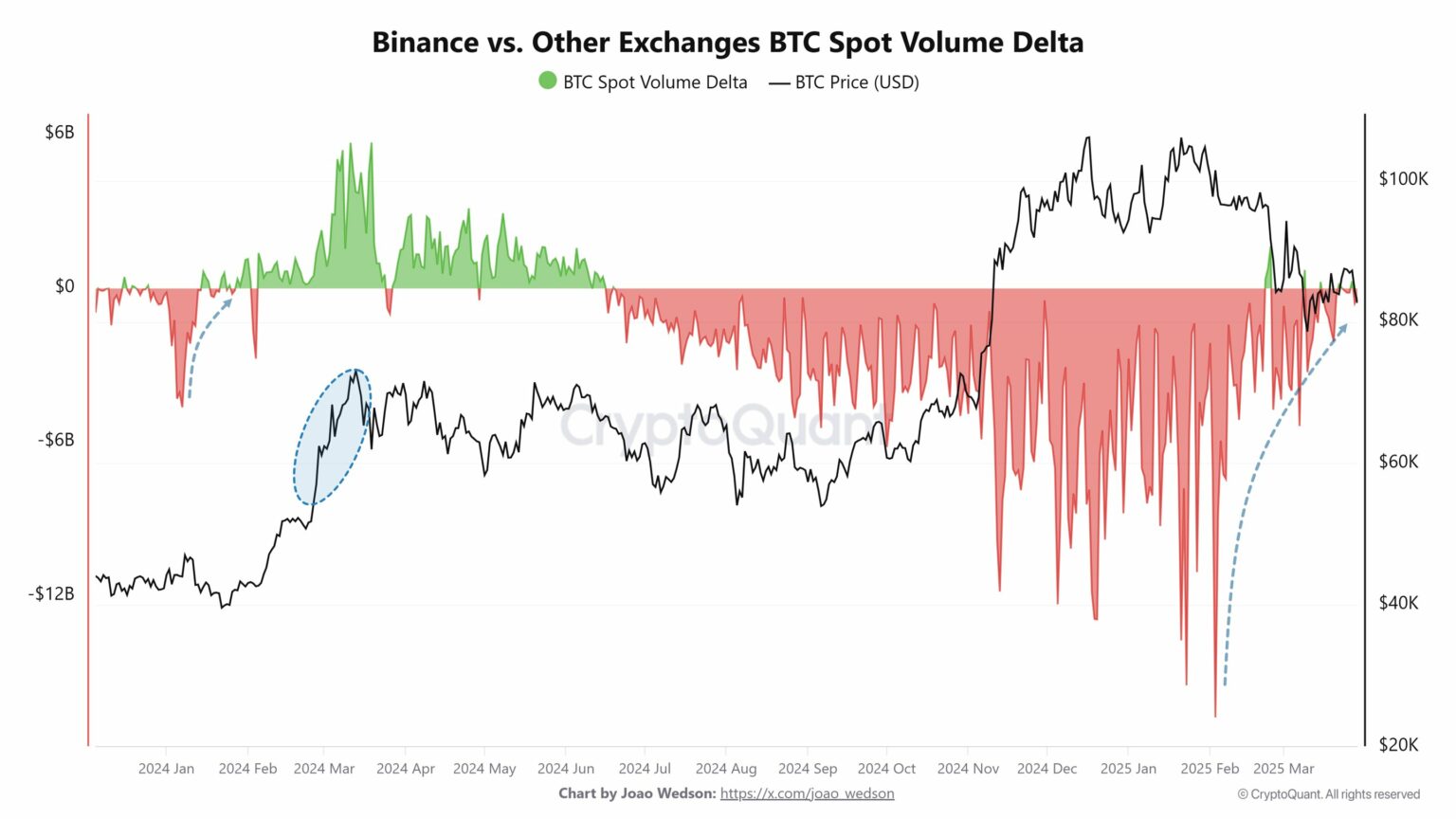 Kripto piyasası belirsizlik döneminden geçerken, Binance’in piyasa hakimiyeti yükselmeye devam ediyor. Analist Joao Wedson’a göre, Binance’in spot hacmi tüm diğer borsaların toplamını geçmiş durumda.