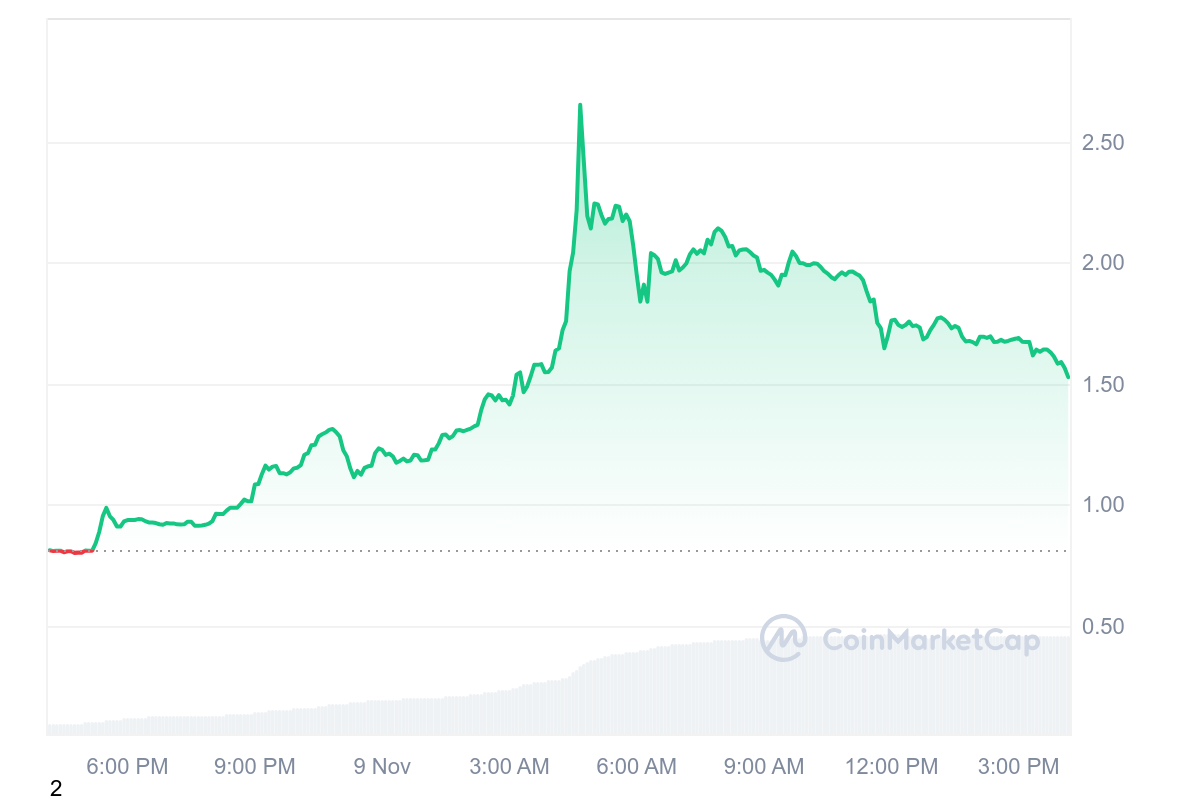 GRASS weekly price chart. Source: CoinMarketCapMeanwhile, DRIFT also performed strongly over the past day and week. The altcoin’s price surged nearly 219% on a weekly basis. The token peaked after the Binance listing and then lost some altitude. At the time of writing, DRIFT was trading at $1.53, up more than 89% on a daily basis. In addition, the token’s trading volume increased by an extraordinary 689%. This reflects the interest of investors and traders in the token.