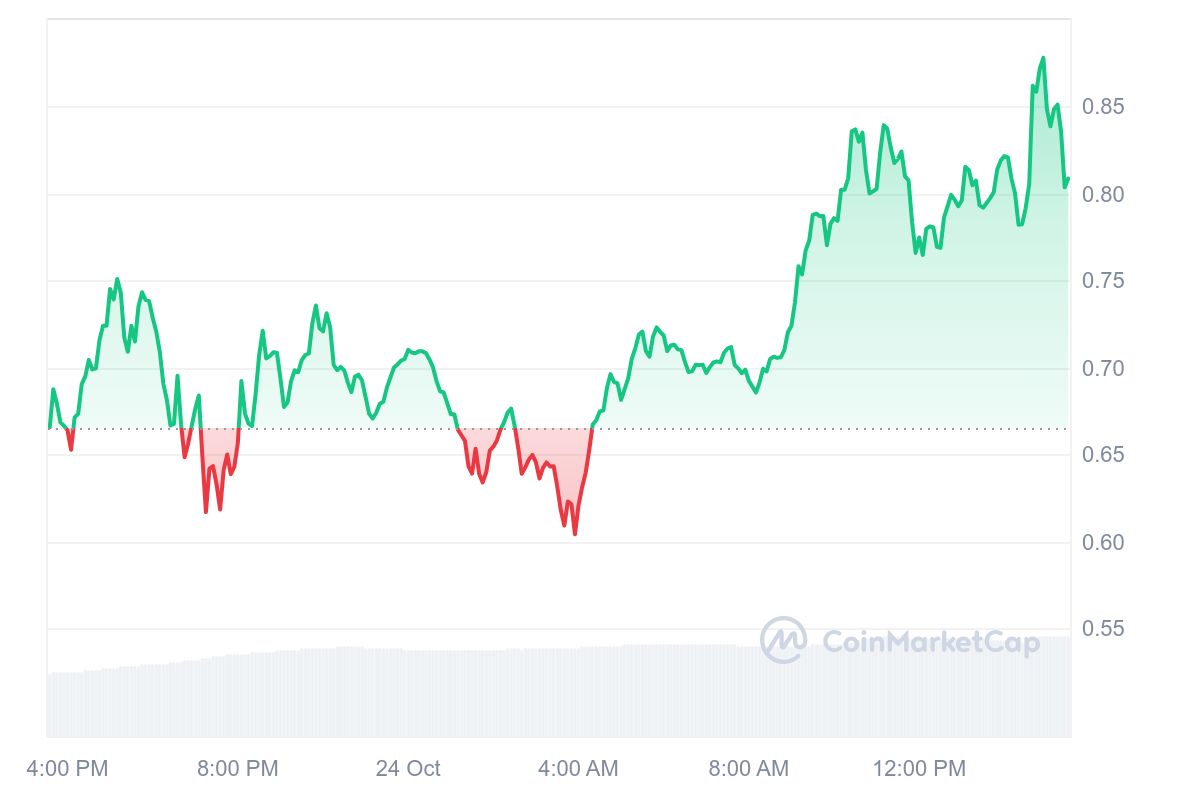 Binance’in GOATUSDT sürekli vadeli işlem sözleşmesini başlatacağını duyurmasının ardından, Goatseus Maximus (GOAT) tokeninin fiyatı, haberin yayılmasının etkisiyle hızlı bir şekilde yükseldi. 24 Ekim tarihinde, GOAT tokeni %15’in üzerinde bir artış göstererek kısa bir süreliğine 0.8729 dolar seviyesine ulaştı. Bu artış, özellikle yatırımcıların Binance’in bu yeni ticaret seçeneğine olan ilgisinin göstergesi olarak değerlendiriliyor. GOAT’ın piyasa değeri bu süreçte 875 milyon dolara kadar ulaştı.