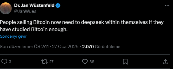 Melanion GreenTech baş araştırmacısı Jan Wüstenfeld, Bitcoin’in piyasa dışı bir gelişme nedeniyle satılmasını eleştiriyor. Analist, yatırımcıların Bitcoin’in potansiyelini tam olarak anlayıp anlamadıklarını sorgulaması gerektiğini belirtti.