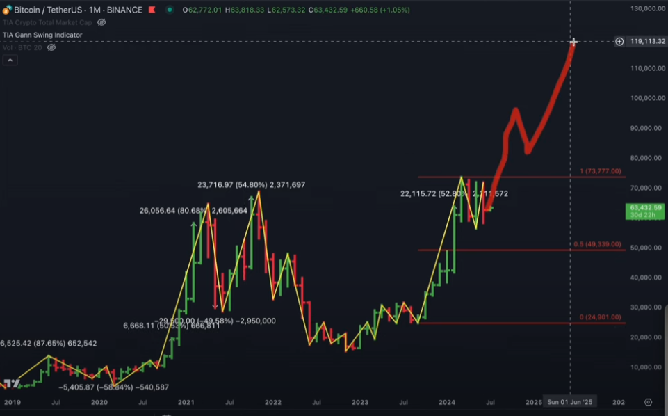 Bu büyük yükseliş pek çok insanı şok edecek. BTC en son yaklaşık yedi ay boyunca yükseldiğinde ne olduğuna bakın: Mart’tan Ekim’deki (2023) kırılmaya kadar. Yedi aylık büyük bir yükseliş 25.000 dolardan 74.000 dolara büyük bir yükselişe neden oldu. Aynı yüzdelerde olması gerektiğini söylemiyorum. Sadece fiyatı oldukça zorlayan önemli bir hareketten bahsediyorum. Son döngüde olduğu gibi düz bir çizgi olup olmayacağını bilmiyorum. Büyük bir yükseliş, bir geri çekilme ve ardından tekrar yükseliş olabilir.