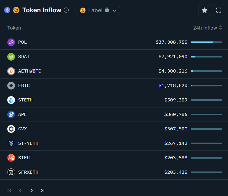 Listedeki ilk sırada POL token’ı bulunuyor. POL, son 24 saat içinde 37 milyon doları aşan bir giriş alarak dikkatleri üzerine çekti. Bu ani yükseliş, piyasadaki yatırımcıların POL’a olan ilgisinin arttığını gösteriyor. POL token’ındaki bu büyük akış, gelecekte daha fazla volatilite ve değer artışı yaşanabileceğinin sinyalini veriyor olabilir. Yatırımcıların neden bu token’a bu kadar ilgi gösterdiği ise, henüz net değil. Fakat olası projeler, ortaklıklar veya platform yükseltmeleri, bu artışın arkasındaki faktörler olabilir.