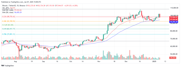 Kriptokoin.com’dan takip ettiğiniz üzere BTC fiyatı son 24 saat içinde %5 düştü. Kripto para yazı sırasında 97.804 dolardan işlem görüyordu. 24 saatin en düşük ve en yüksek fiyatı sırasıyla 97.153 dolar ve 102.712 dolar. Ayrıca, işlem hacmi son 24 saatte %27 oranında arttı. Bu da traderlar arasındaki ilginin arttığını gösteriyor.