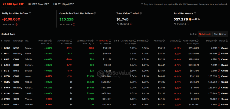 Bu sırada ABD Spot Bitcoin ETF’si çalkantılı bir hafta geçirdi ve 14 Haziran’da yaklaşık 200 milyon dolarlık önemli bir çıkışa neden oldu. Fidelity’nin FBTC’si 80,1 milyon dolarlık çıkışla bu çıkışa öncülük ederken onu 52,3 milyon dolarlık Grayscale GBTC takip etti. Bitcoin’in fiyatı, ABD’deki kasvetli Spot Bitcoin ETF ticaretinin ortasında volatilite işaretleri gösterirken, uzmanlar bunun kripto para piyasası üzerindeki potansiyel etkilerine ağırlık veriyor.