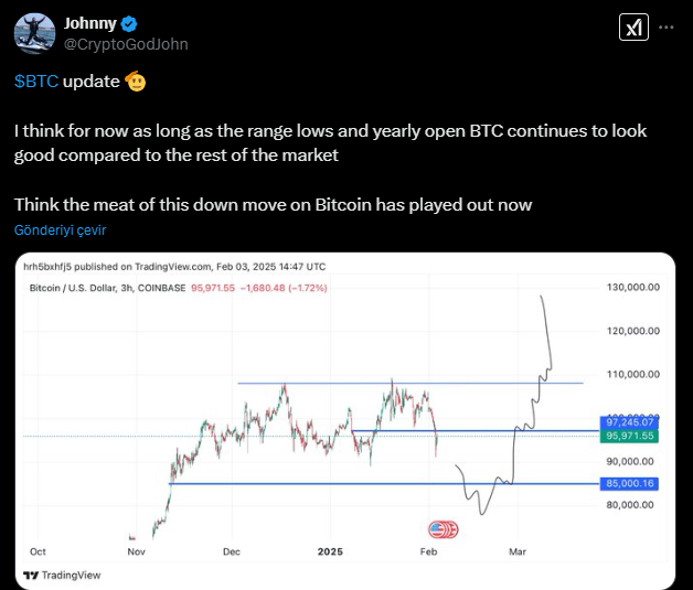 Rekt Capital, BTC fiyatındaki düşüş nedeniyle CME Group’un Bitcoin vadeli işlem piyasasında yeni bir “gap” oluştuğunu belirtti. Bu boşluğun, piyasalar yeniden açıldığında kısa vadeli fiyat hareketi için bir manyetik alan gibi davrandığı ve genellikle birkaç gün veya saat içinde dolduğu biliniyor. Analist, “Volatil bir yeniden test süreci devam ediyor,” diyerek, Şubat ayı sonunda Bitcoin’in 96,600 dolar üzerinde kapanış yapması gerektiğini belirtti.