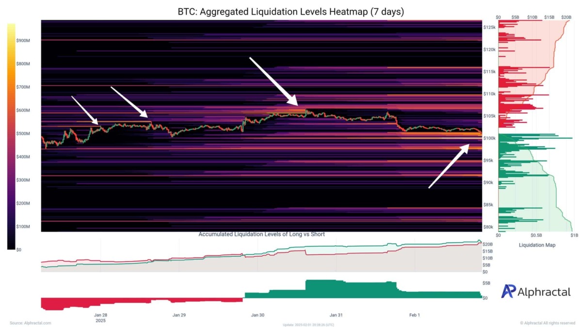 Son günlerde BTC piyasasında büyük çaplı tasfiye hareketleri yaşandı. Özellikle 101.500 ile 99.800 dolar arasındaki fiyat aralığında yoğun likidasyon gerçekleşti.
