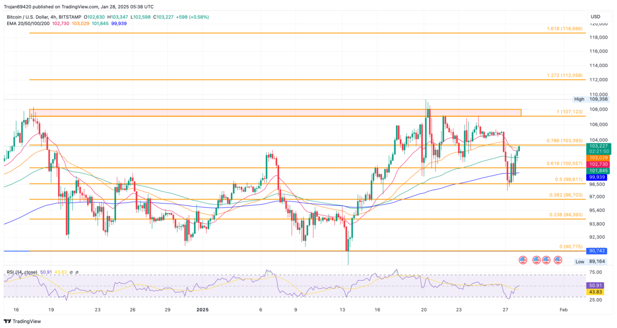 Bitcoin, piyasanın toparlanma sinyalleri vermesiyle birlikte güçlü bir yükseliş sergiliyor. 97.750 dolara kadar gerileyen BTC, sert bir dönüş yaparak 103.000 dolar seviyesine ulaştı. Şimdi yatırımcılar, bu yükselişin devam edip etmeyeceğini ve 107.000 dolara ulaşıp ulaşamayacağını merak ediyor.