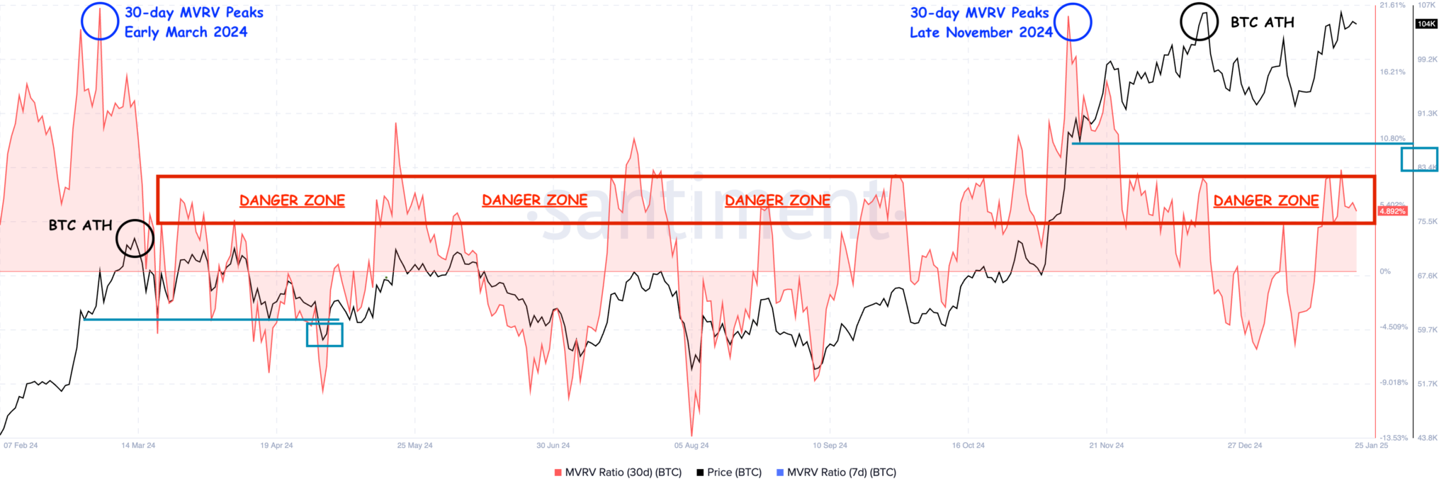 Mevcut piyasa verileri, Bitcoin’in kritik bir seviyede olduğunu gösteriyor. 30 günlük piyasa değeri-gerçekleşen değer (MVRV) oranı, Bitcoin’in satış baskısı altında olduğunu işaret ediyor. Kısa vadeli yatırımcıların kâr satışı yapması, fiyatın aşağı yönlü baskılanmasına neden olabilir.