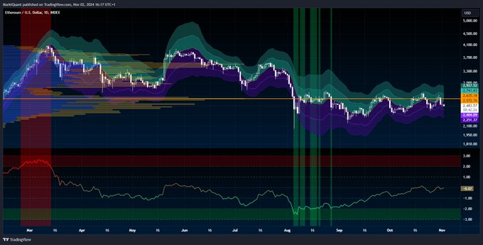 Ethereum’un (ETH) son dönemde sergilediği değerleme ise Bitcoin’e kıyasla daha dengeli durumda. CryptoQuant’a göre, ETH’nin değerleme seviyesi nötr olarak kabul edilen -0.07 seviyesinde bulunuyor. Bu, ETH’nin dirençli bir yapıya sahip olduğunu ve Bitcoin’deki olası dalgalanmalara karşı bir nebze koruma sağladığını gösteriyor. Ethereum için kritik direnç seviyesi ise 2600 dolar olarak belirlendi. Bu seviyenin yukarı yönlü kırılması, ETH’nin piyasada yukarı yönlü bir ivme kazanmasını sağlayabilir. CryptoQuant’a göre 2600 dolar direncinin aşılması halinde, daha güçlü bir yükseliş trendine girmesi olası.