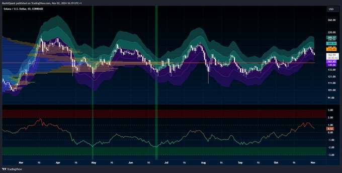 Bitcoin ile paralel olarak Solana (SOL), son haftalarda önemli bir değerleme düşüşü yaşadı. SOL’un değerleme oranı şu anda 0.52 seviyesine gerilemiş durumda ve bu, kısa vadede zayıflık yaşanabileceğine işaret ediyor. Buna rağmen, SOL’un halen pozitif bölgede kalmayı başarması ve yatırımcı ilgisinin devam etmesi, toparlanma ihtimalini destekliyor. SOL’un volatilite bantlarında -1 Standart Sapma (SD) kanalına yakın bir seviyede işlem görmesi, satış baskısının sınırlandığını gösteriyor. BTC’de yaşanacak olası bir düşüşün Solana’yı nasıl etkileyeceği ise merak konusu.