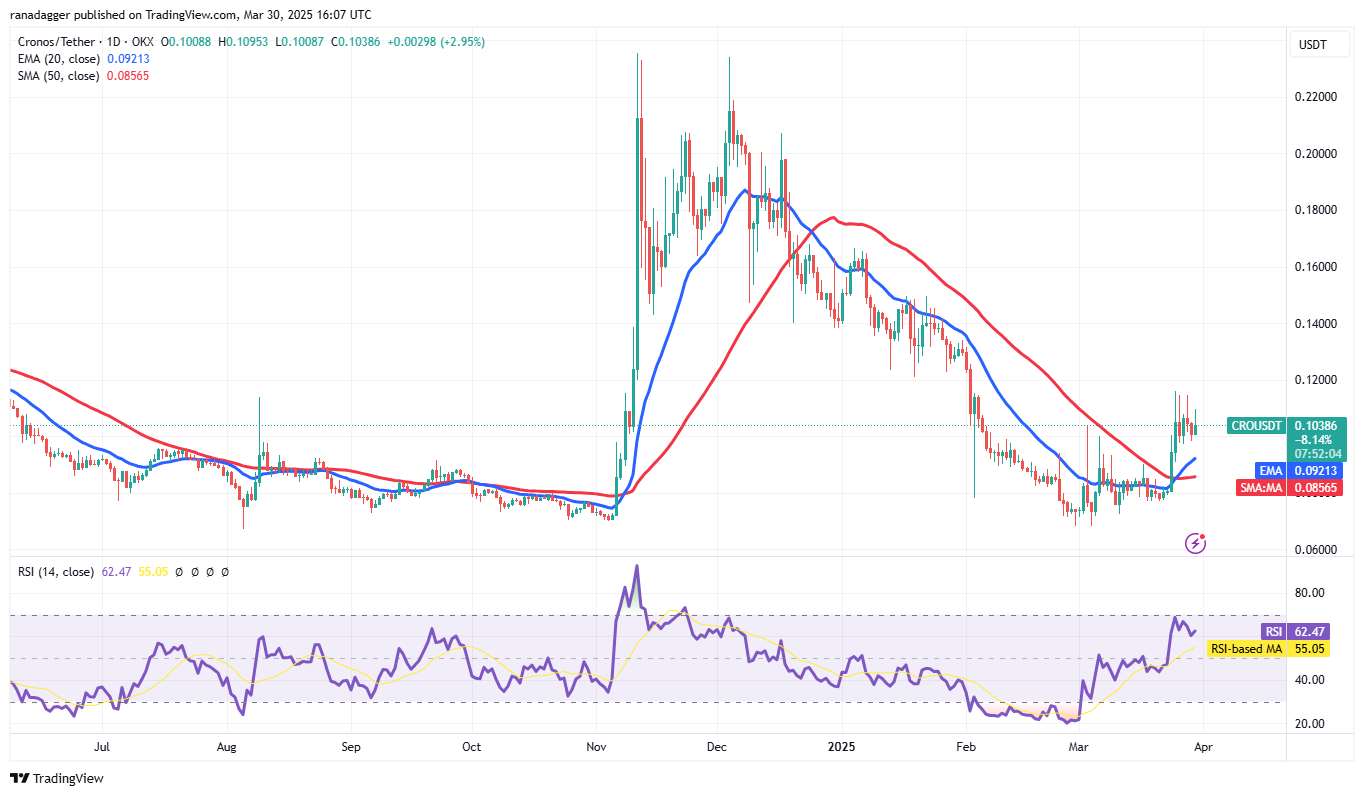 Cronos (CRO), 24 Mart’ta hareketli ortalamaların üzerine çıkarak düşüş trendinin sona ermiş olabileceğini gösterdi.
