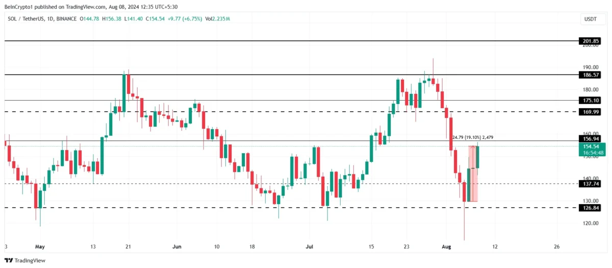 Solana Fiyat Analizi. Kaynak: TradingViewBununla birlikte, kâr almanın, Solana’nın fiyatının 156 dolar desteğini kaybetmesine ve altcoini geri göndermesine neden olması mümkün. Muhtemelen 150 doların altına düşmesi kazançları silmesine ve yükseliş tezinin geçersiz olmasına neden olacaktır.