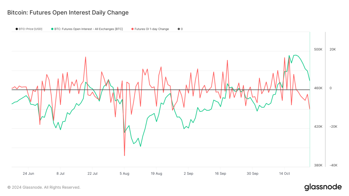 Onchain analitik firması Glassnode’dan alınan veriler, 25 Ekim’deki tek günlük OI düşüşünün Ağustos ayından bu yana görülen en büyük düşüş olduğunu gösterdi. Kantitatif Bitcoin ve dijital varlık fonu Capriole Investments’ın kurucusu Charles Edwards, şu yorumu yapıyor: