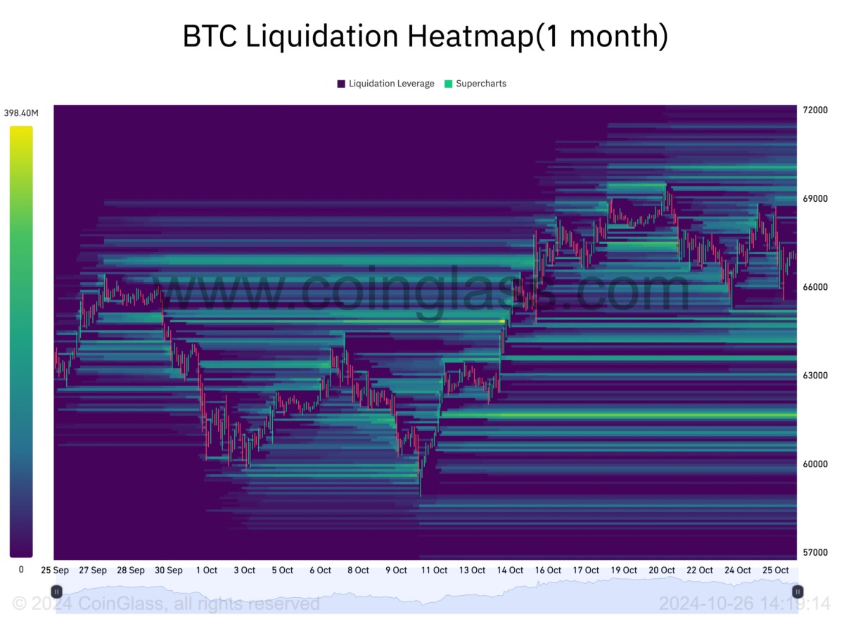 BTC likidasyon ısı haritası. Kaynak: CoinGlass