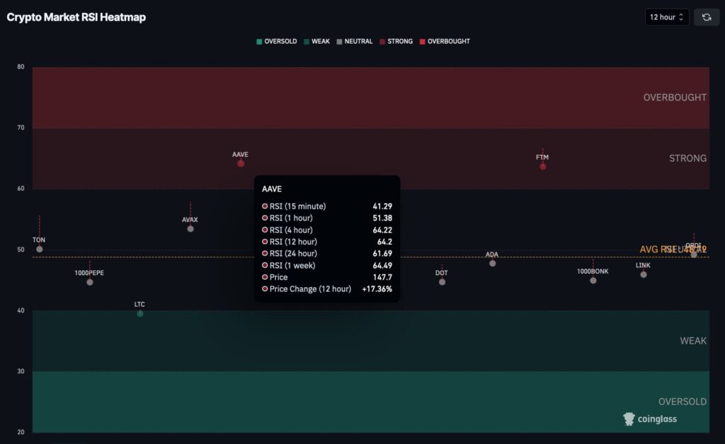 Kripto Piyasası RSI Isı Haritası – Aave (AAVE). Kaynak: CoinGlass
