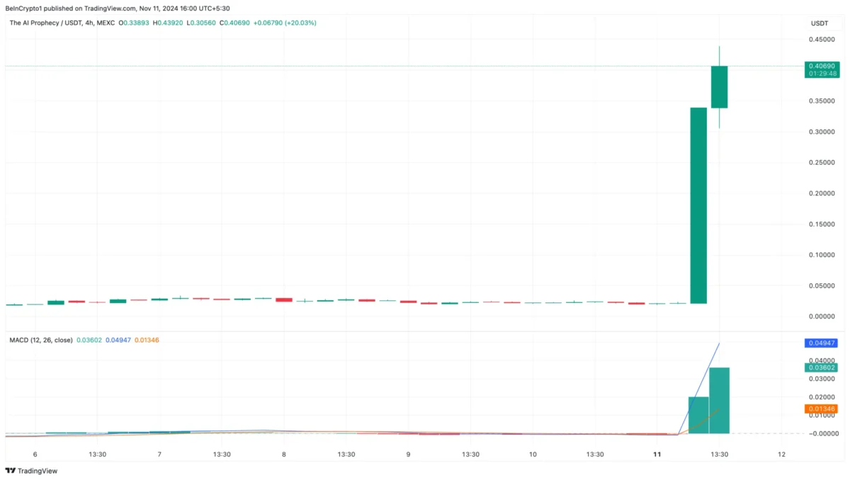Bu arada, yazı sırasında ACT’nin fiyatı 0,40 dolar. Altcoin işlem hacmi %7.000 oranında artış kaydetti. Hacim ve fiyat sıçramaya devam ederse, altcoin’in değeri yükselmeye devam edebilir. 4 saatlik grafikte, Hareketli Ortalama Yakınsama Sapması (MACD) pozitif bölgeye döndü. Ayrıca, momentumda yükseliş tarafına doğru bir kayma olduğunu işaret etti. Bu durumda altcoin fiyatı çok daha yüksek seviyelere sıçramaya devam edebilir ve kısa vadede 0,50 doların üzerine çıkabilir. Bununla birlikte, meme coin holderları büyük miktarlarda kar ayırırsa tahmin geçersiz olur. Bu gerçekleşirse ACT’in 0,20 dolara kadar düşmesi mümkün.