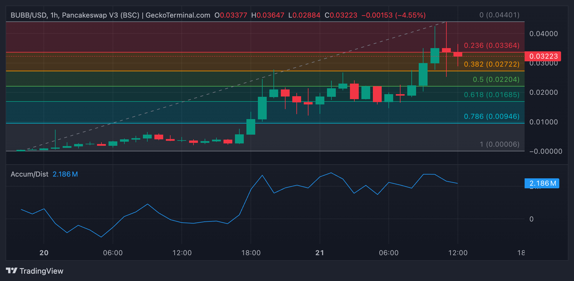 Yeni çıkan BUBB coin, son 24 saatte %746 artarak 0,032 dolara ulaştı. Bu ani yükseliş piyasada merak uyandırdı.A/D göstergesi 2,18 milyon seviyesinde ve yükseliyor. Bu, güçlü bir birikim süreci olduğunu gösteriyor. Alıcılar fiyatı yukarı çekiyor.