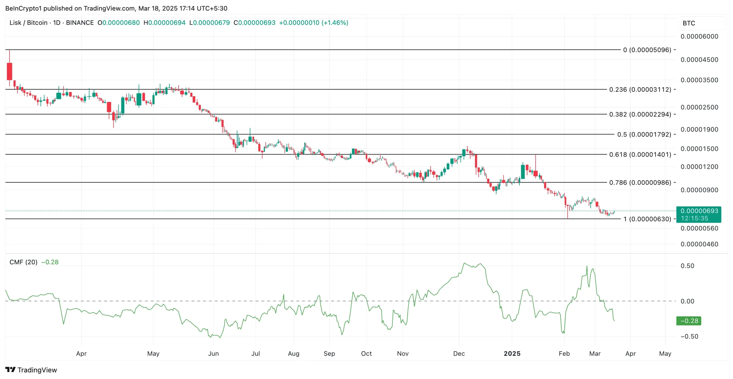 Bir varlığın CMF’si, paranın o varlığa nasıl girip çıktığını izler. Bir fiyat rallisi sırasında düştüğünde, aşağı yönlü bir sapma ortaya çıkar. Bu eğilim, kripto para fiyat rallisinin güçlü bir destekten yoksun olduğunu ve fiyat artışına rağmen alım baskısının zayıfladığını gösteriyor. Trend devam ederse, momentum azaldıkça fiyatların tersine dönmesini veya bir düzeltmeyi tetikleyebilir. LSK bu durumda kazançlarını kaybedebilir ve 0,0000063 dolara düşebilir.
