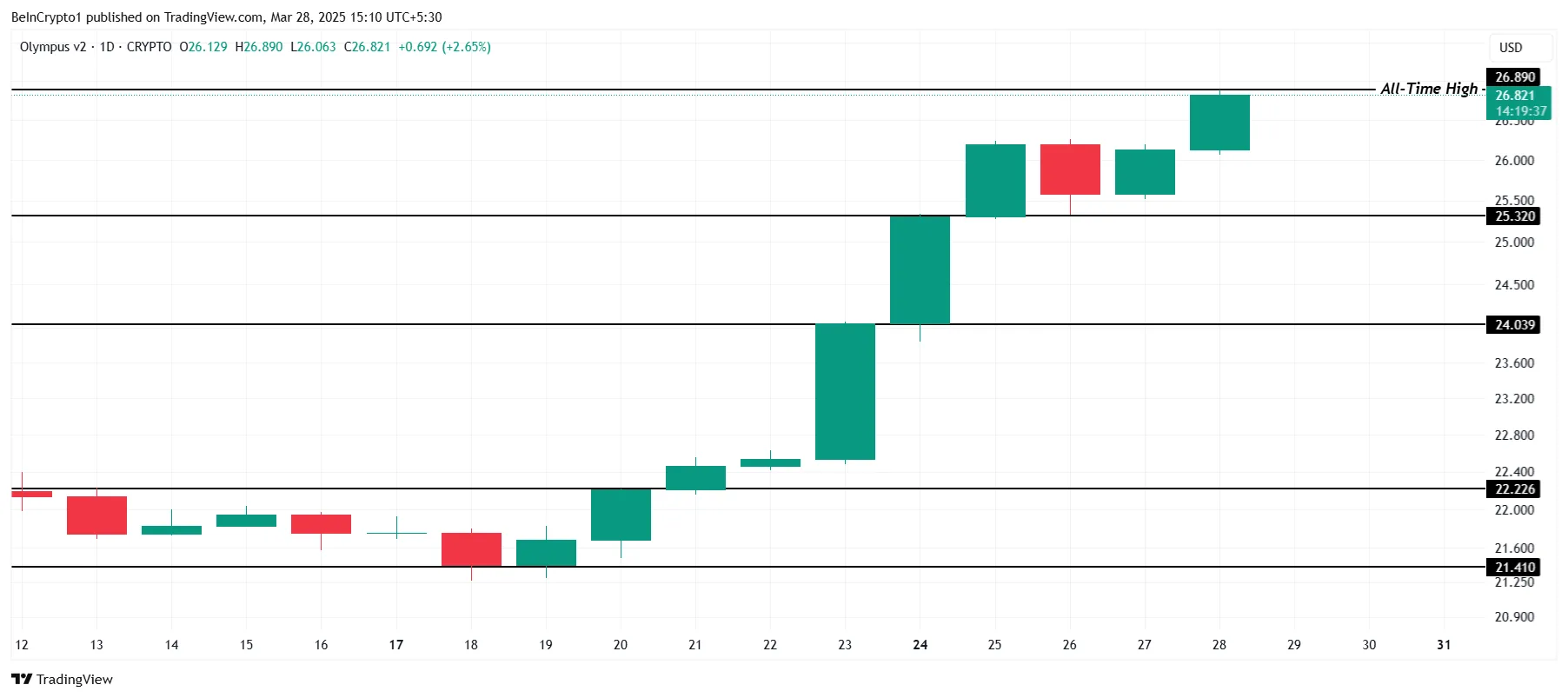 OHM’nin fiyatı, karışık piyasa sinyallerine rağmen yükseldi ve 26,89 dolar ile tüm zamanların en yüksek seviyesine ulaştı. Altcoinin dayanıklılığı, güçlü yatırımcı ilgisini ve devam eden momentumu yansıtıyor. Bu fiyat artışı, yatırımcı güveninin önümüzdeki günlerde de yüksek kalması halinde OHM’yi potansiyel olarak yükseliş eğilimini sürdürecek şekilde konumlandırıyor. Şu anda 26,82 dolardan işlem gören OHM, yatırımcı desteğinin devam edeceği varsayımıyla daha fazla yükselmeye hazırlanıyor. Yükseliş eğilimi devam ederse OHM 30,00 dolara kadar yükselerek son dönemdeki kazançlarını artırabilir. Böylece, yeni ATH’ler oluşturabilir. Çükü, kripto para önemli bir potansiyel göstererek kısa vadede yatırımcılar için cazip bir seçenek haline geldi.