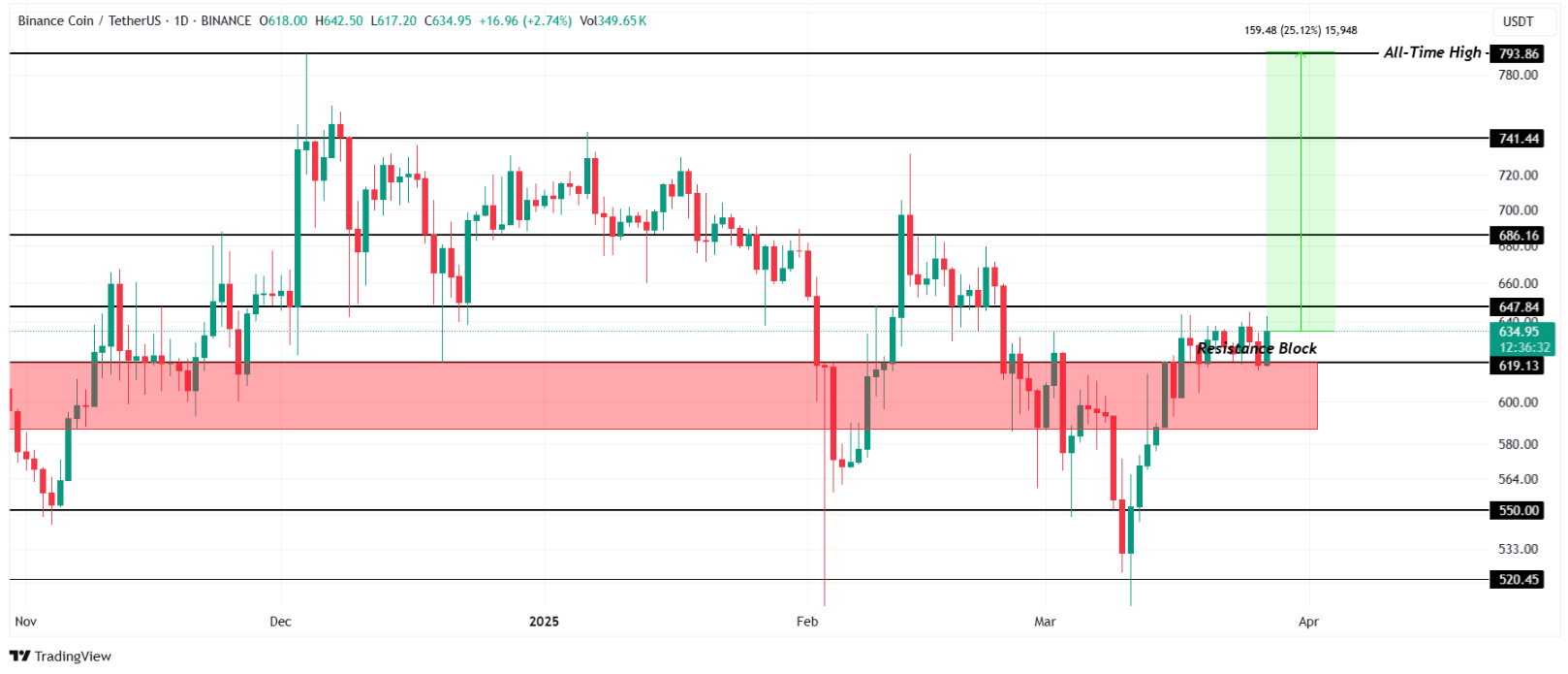 Şu anda BNB, 587-619 dolar arasındaki önemli destek bloğunun üzerinde kalmayı başarıyor. Eğer genel piyasa toparlanırsa, BNB’nin Nisan ayı içinde yeni bir ATH denemesi mümkün olabilir. Fakat 647 dolar direncinin aşılamaması hâlinde, BNB fiyatı yeniden 619 doların altına düşebilir ve bu da yükseliş senaryosunu boşa çıkarabilir.