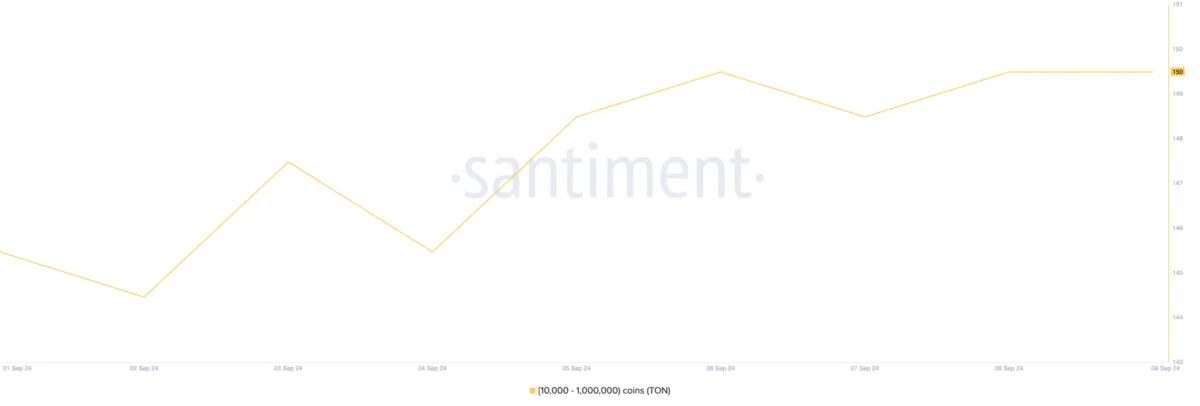 Analitik platformu Santiment’in verileri son birkaç günde TON balina sayısında kayda değer artış olduğunu gösteriyor. On-chain veri sağlayıcısına göre, 10.000 ila 1.000.000 TON tutan adresler geçen hafta %3 arttı. Kriptokoin.com’dan takip ettiğiniz üzere, Fransız yetkililer 24 Ağustos’ta Telegram CEO’su Pavel Durov’u tutukladı. Bu süreçte, bu yatırımcı grubu varlıklarının önemli bir kısmını elden çıkardı. Böylece, balina sayısı 30 günün en düşük seviyesi olan 131 adrese düştü. Bu toplu satış, 24 saat içinde altcoin fiyatında çift haneli keskin bir düşüşe yol açtı.