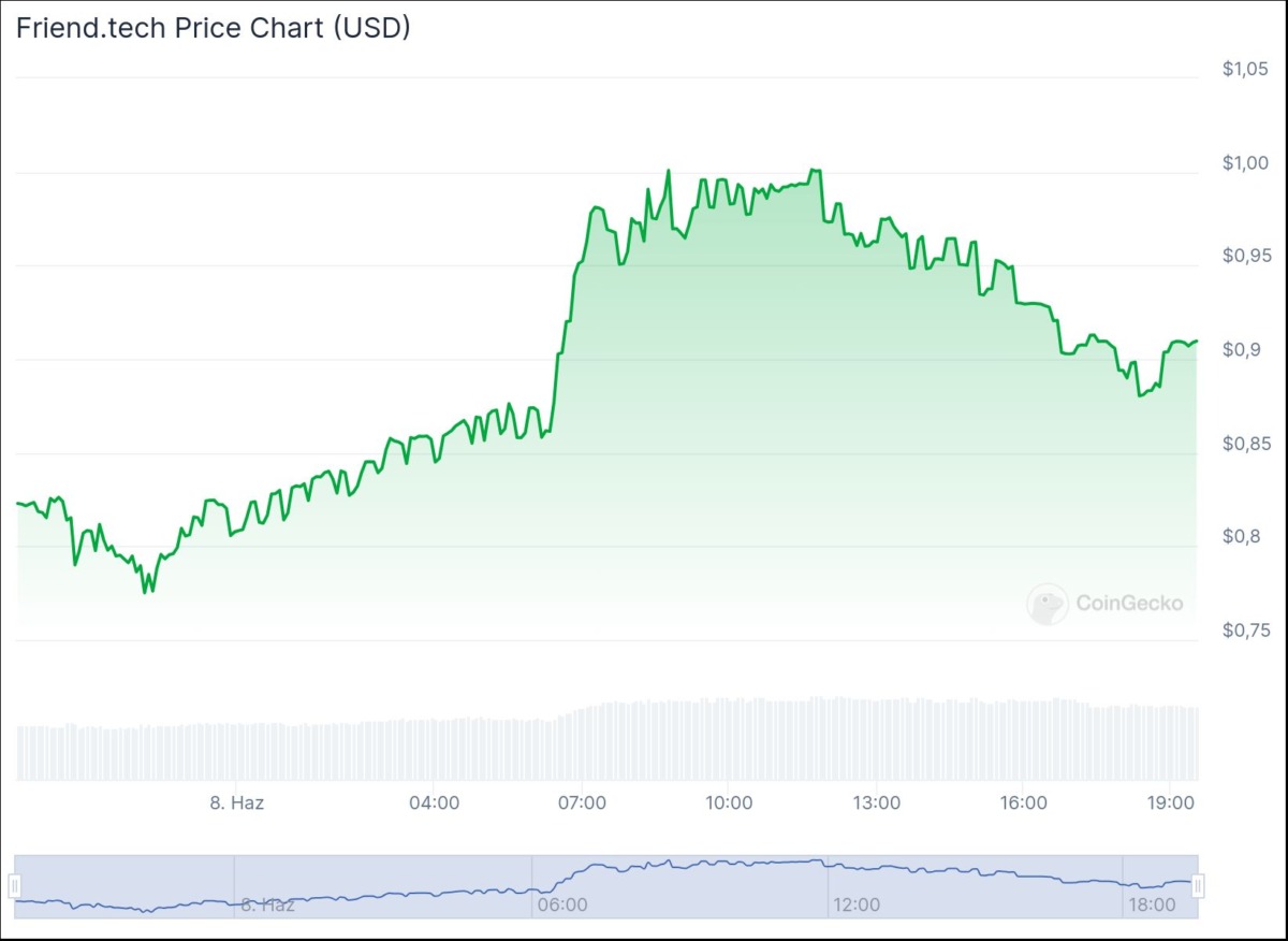 Haberin ardından, platformun yerel FRIEND token’ı yaklaşık %15 artış gördü. Bu hamlesiyle FRIEND 0,96 dolara ulaştı. Bununla birlikte daha sonra biraz irtifa kaybı yaşadı. Altcoin, yazı sırasında günlük bazda %10,7 artışla 0,9108 dolardan el değiştiriyordu.