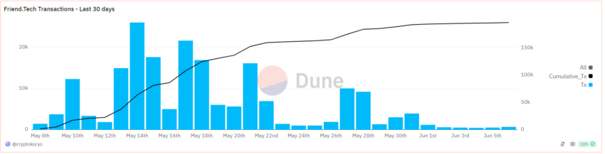 Friend.tech İşlem Hacmi. Kaynak: Dune Analytics