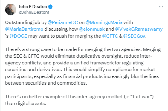 John E. Deaton SEC ve CFTC birleşmesi için çağrı yaptı